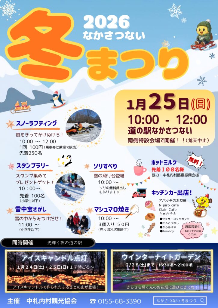 #十勝 #北海道 #道の駅 #道の駅なかさつない #冬まつり #スノーラフティング2026 冬まつり ポスター・チラシ